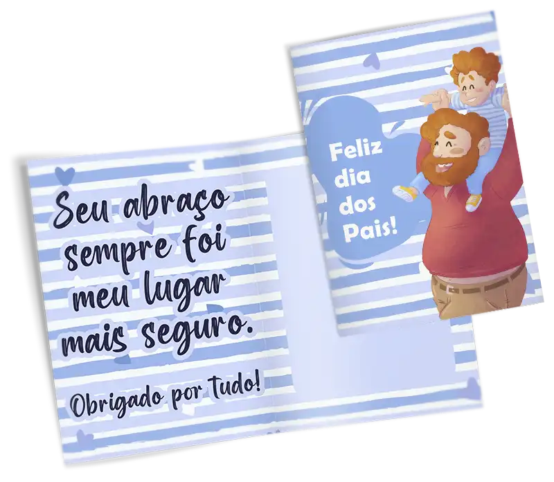 Nem sempre dá tempo de comprar um cartão, mas isso não significa que a homenagem precise ser menos especial. Com nossos cartões de Dia dos Pais para imprimir, você pode escolher o modelo que mais combina com seu pai, baixar em PDF e preparar tudo aí mesmo, em casa.